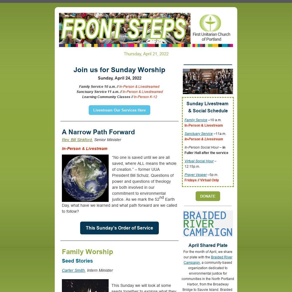 Have a Submission for E-News?If you have a church-related submission you would like published in our weekly Front Steps (E-News), please submit it here with subject line “For E-News.”