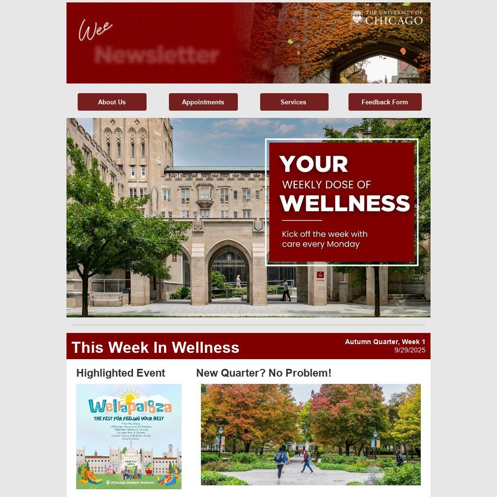 Whether you’re just starting your UChicago journey or returning for another year, we’re here to support your well-being every step of the way to stay balanced, and thrive both on and off campus. Take a look at Student Wellness events and subscribe to our calendar to prioritize your health and wellbeing!