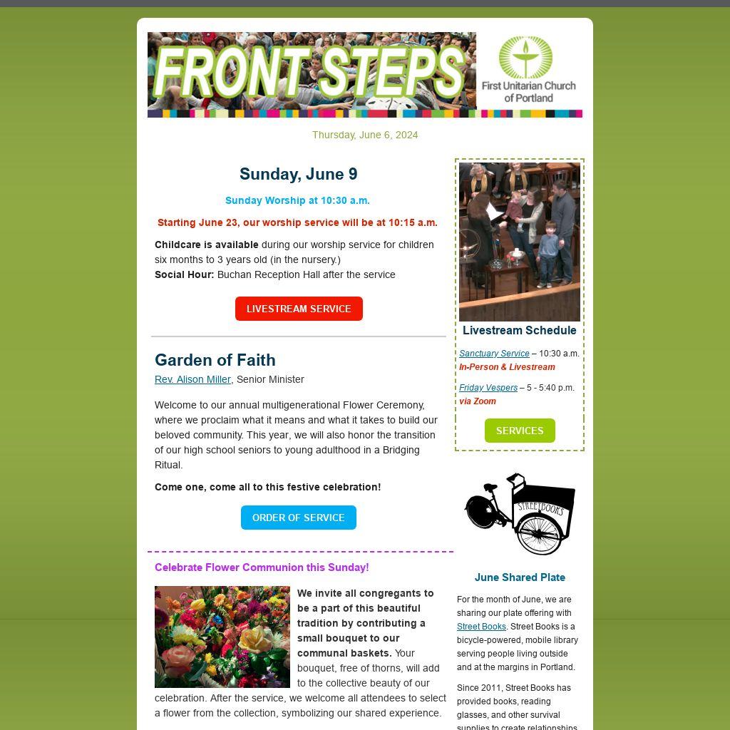 Got something for Front Steps? Send in your church-related submission for our weekly publication. Use "Front Steps" as the subject line and submit here. Deadline: Tuesdays at noon.