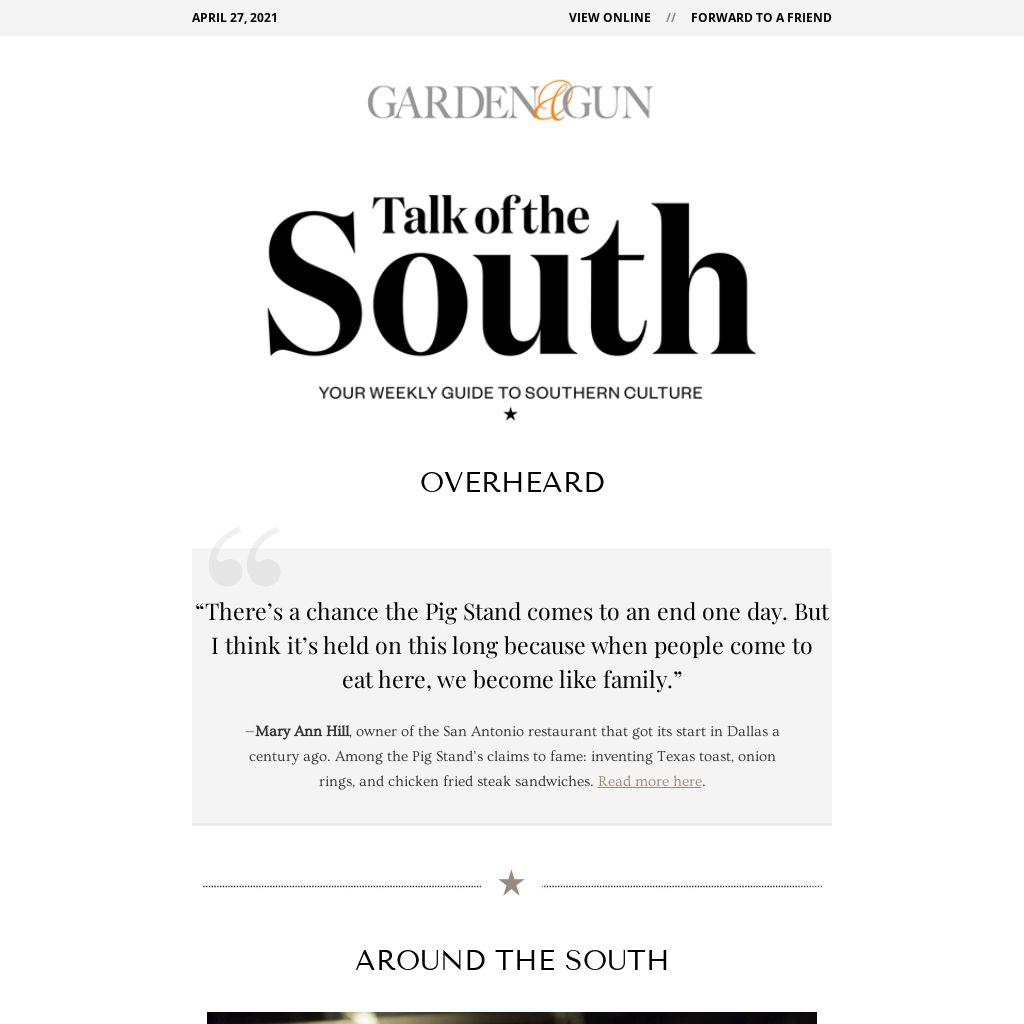 Things I can’t wait to do once my husband and I are fully vaccinated come Saturday: hug my parents; have my best friend over to binge the second season of Selena, the Netflix bio-series about the beloved Tejano singer, after it lands May 4; and hit as many newly opened Charleston restaurants as I can. For our first non-takeout meal in more than a year, we’re going to down oysters and crab toast at Post House for our anniversary, with plans to snag butterbean agnolotti at Vivian Howard’s Lenoir and Viet-Cajun fried chicken to-go from the new Pink Bellies outpost next. Making your own trip here soon? You can find top-notch recommendations in our refreshed Charleston: At a Glance and Eat Like a Local in Charleston guides.