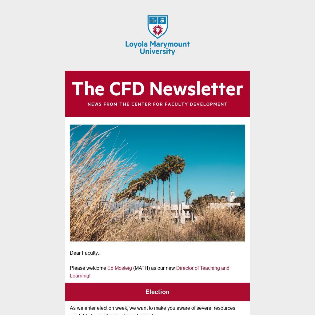 Are you interested in increasing your involvement in the Center for Faculty Development? If so, check out our Faculty Fellows program! This year-long program is designed to support pedagogical, scholarly/creative, and professional development interests of faculty that intersect with the work of sponsoring offices at LMU. Applications are due December 2nd. You can find application information here.