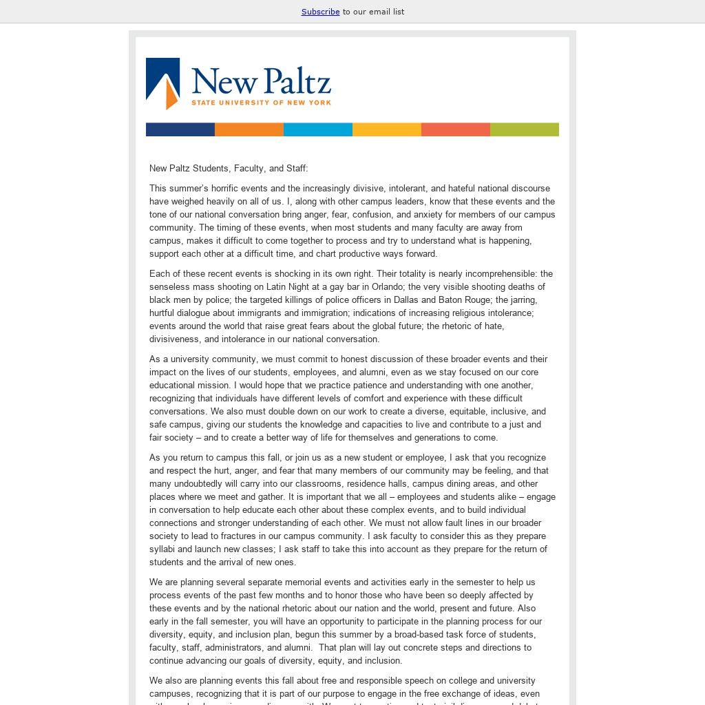 New Paltz Students, Faculty, and Staff: