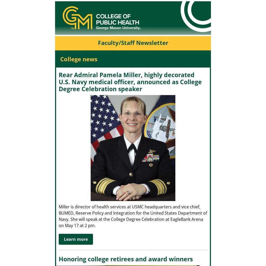 Rear Admiral Pamela Miller, highly decorated U.S. Navy medical officer, announced as College Degree Celebration speaker |