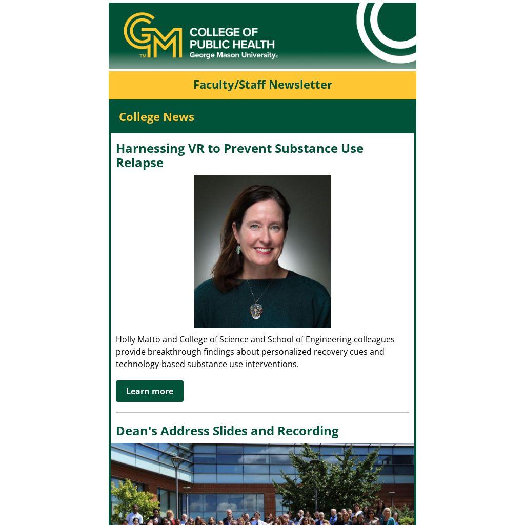 Network with adjuct faculty from around campus and engage with some members of George Mason’s leadership team.