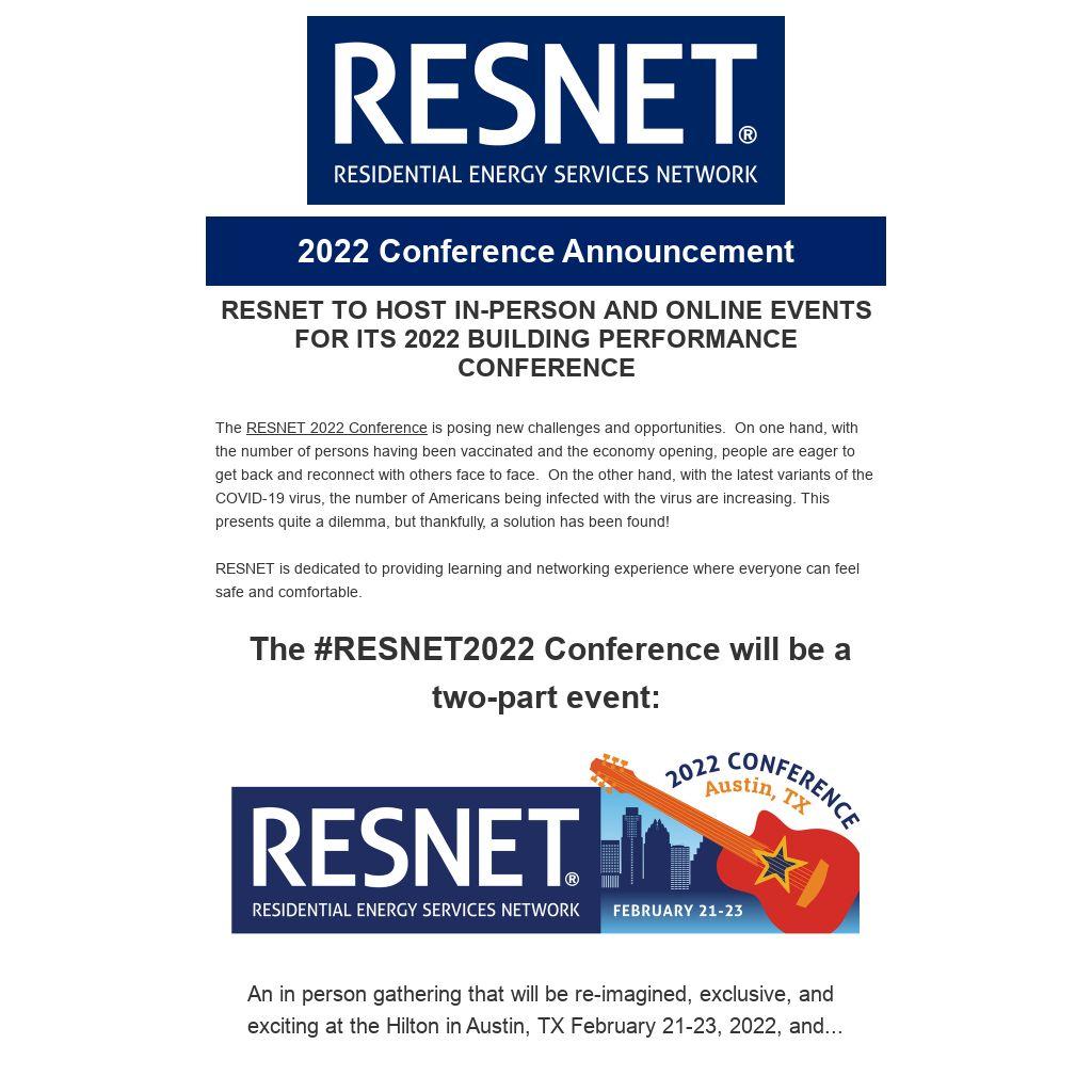 The #RESNET2022 Conference will be a two-part event: