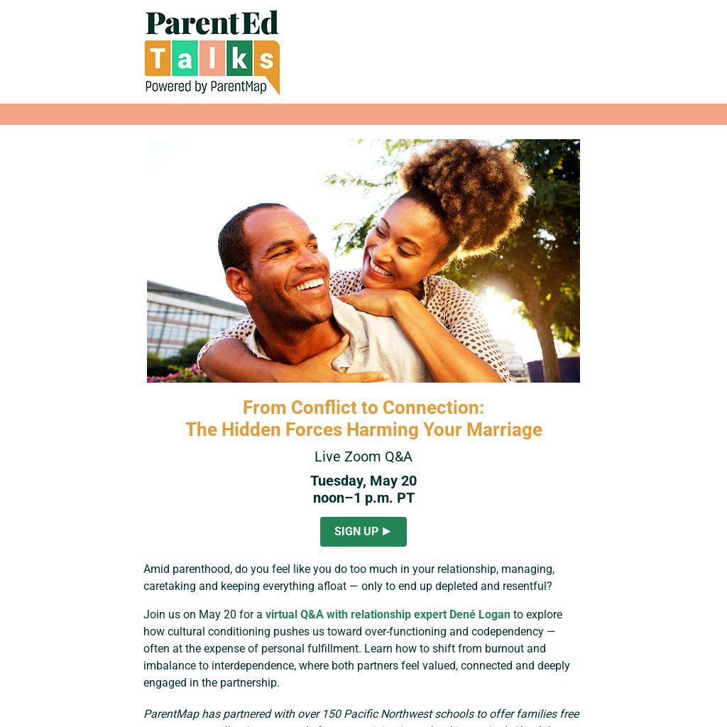 ParentMap has partnered with over 150 Pacific Northwest schools to offer families free access to our talks. A promo code from a participating school is required. Check here to see if your school or district is a member.
