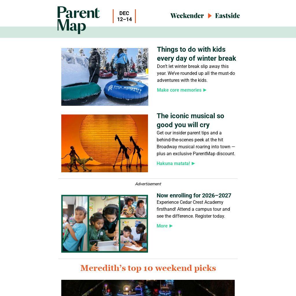 Can't buy our love! ParentMap never sells our good reviews or recommendations for events. Our opinions aren't for sale, and we think that matters. Find more great events on our Family Fun Calendar. To submit an event, fill out our online form.