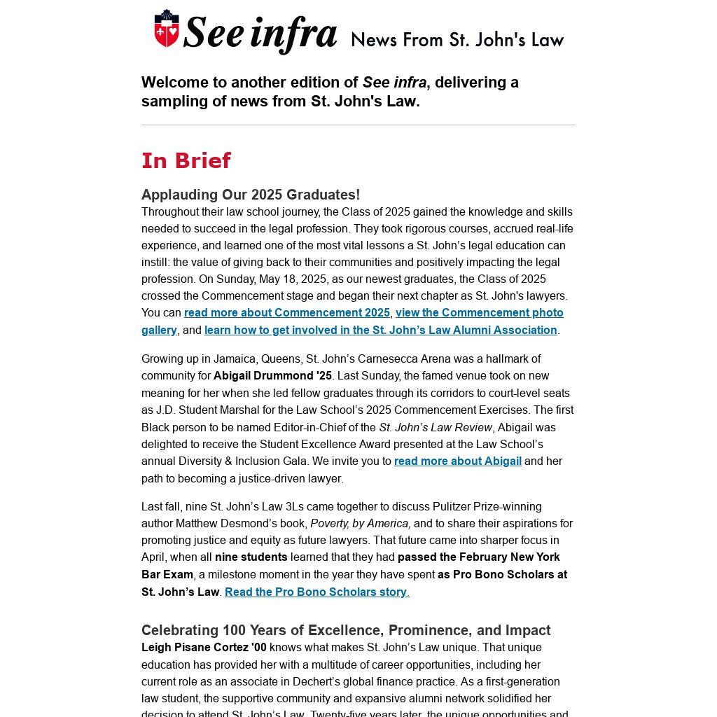Note: By opting out of this email, you are opting out of all email communications from St. John's Law, including upcoming event emails, newsletters, and giving opportunities. If you would just like to be removed from the See infra newsletter, please email hallk1@stjohns.edu.