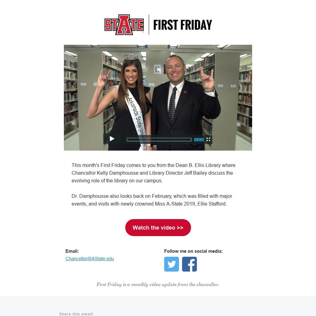 Dr. Damphousse also looks back on February, which was filled with major events, and visits with newly crowned Miss A-State 2019, Ellie Stafford.