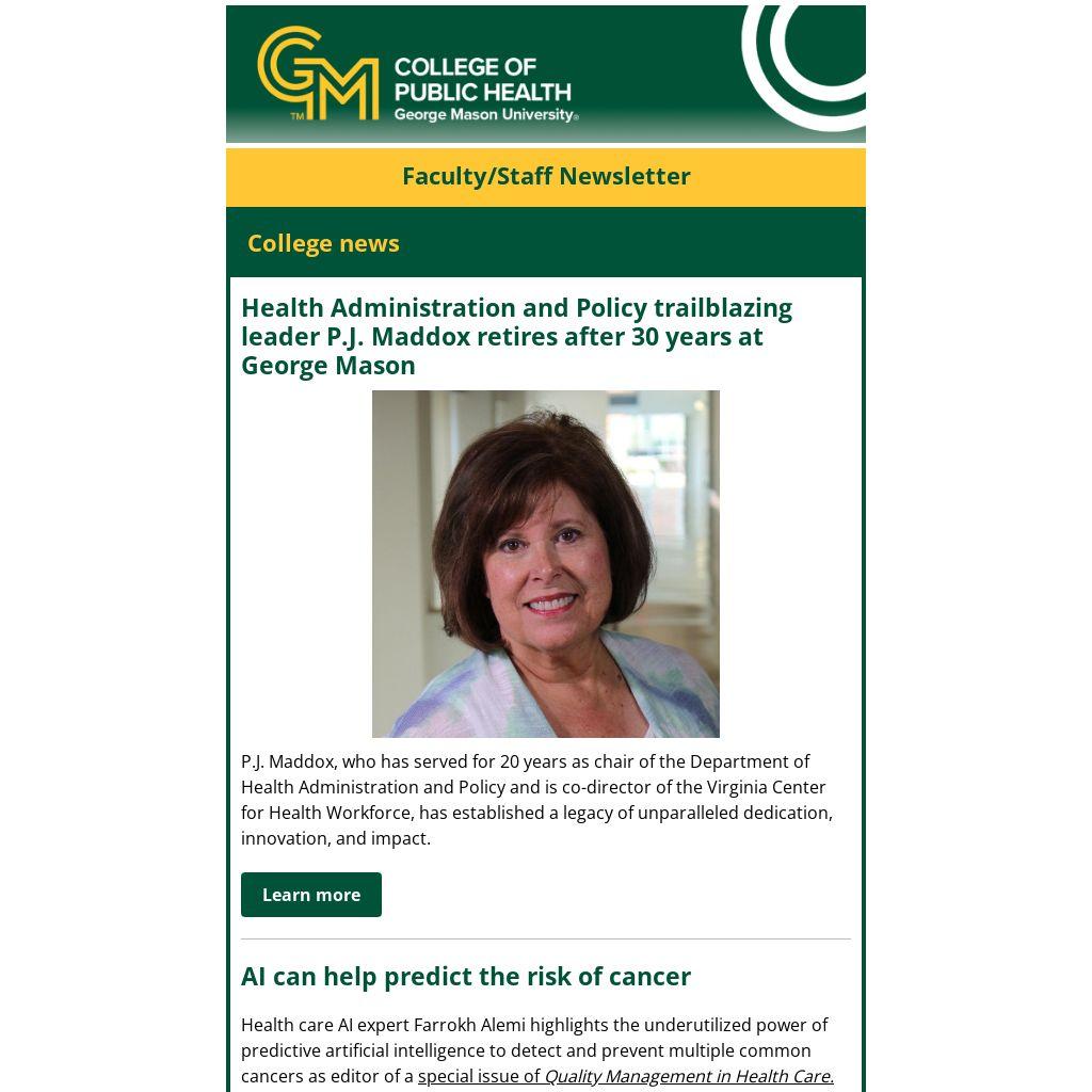 Health Administration and Policy trailblazing leader P.J. Maddox retires after 30 years at George Mason |