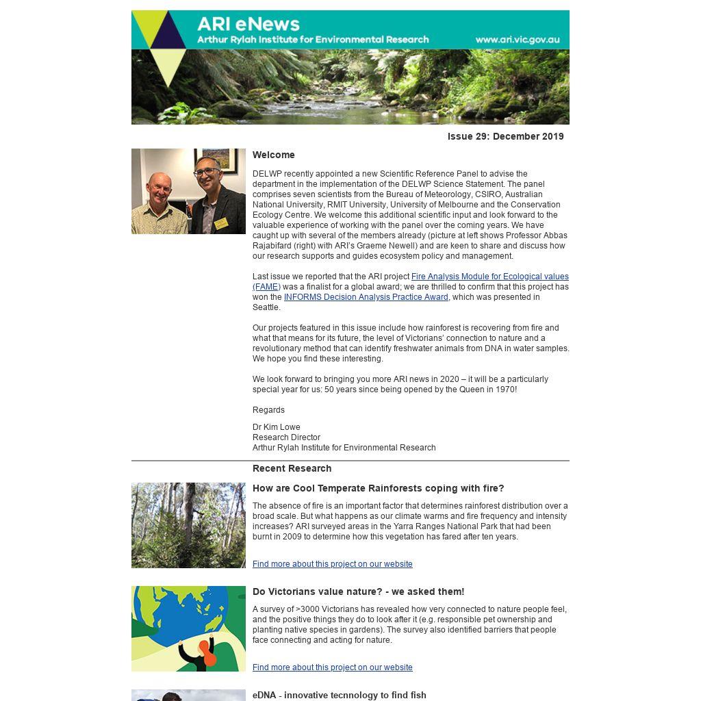 Our projects featured in this issue include how rainforest is recovering from fire and what that means for its future, the level of Victorians’ connection to nature and a revolutionary method that can identify freshwater animals from DNA in water samples. We hope you find these interesting.