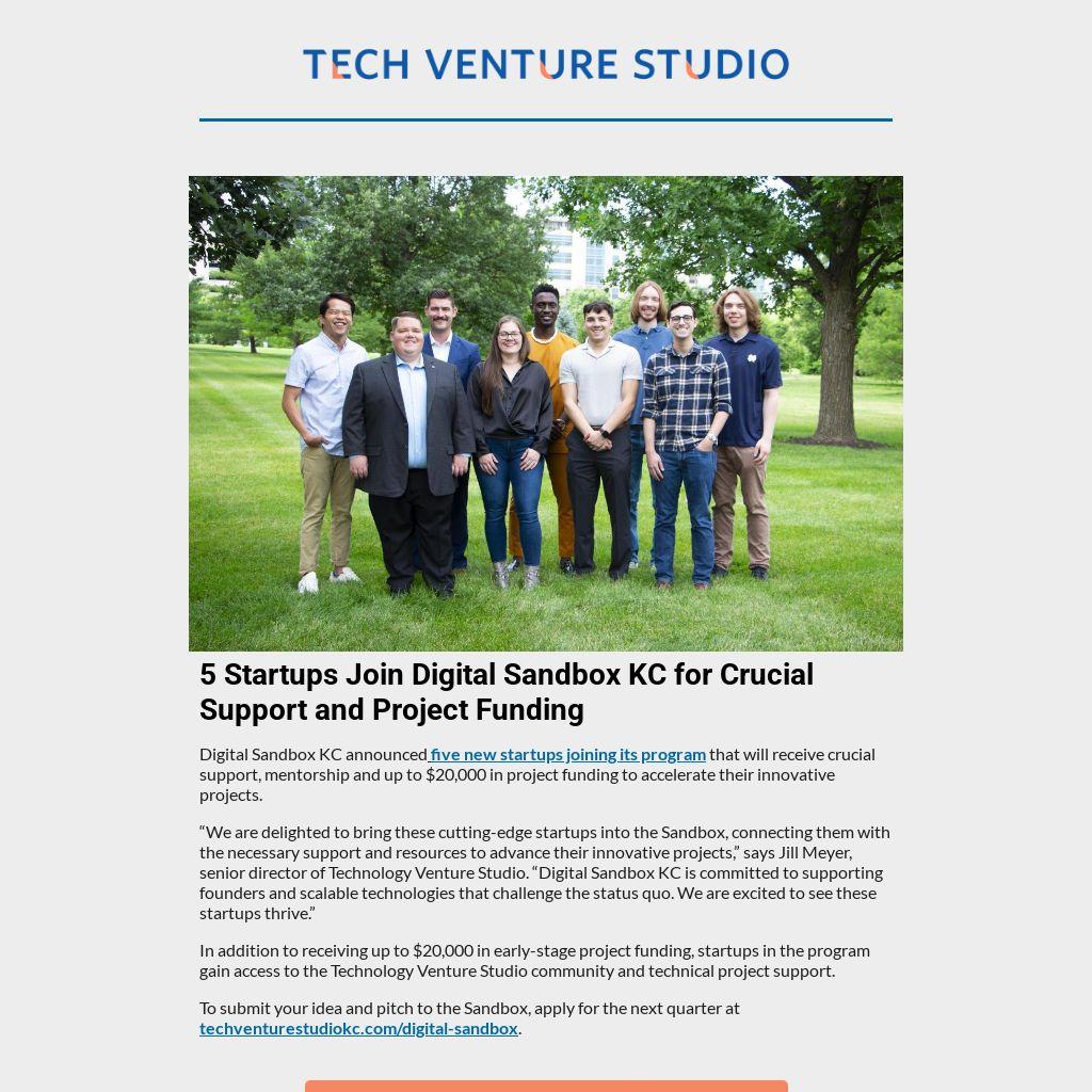 “We are delighted to bring these cutting-edge startups into the Sandbox, connecting them with the necessary support and resources to advance their innovative projects,” says Jill Meyer, senior director of Technology Venture Studio. “Digital Sandbox KC is committed to supporting founders and scalable technologies that challenge the status quo. We are excited to see these startups thrive.”