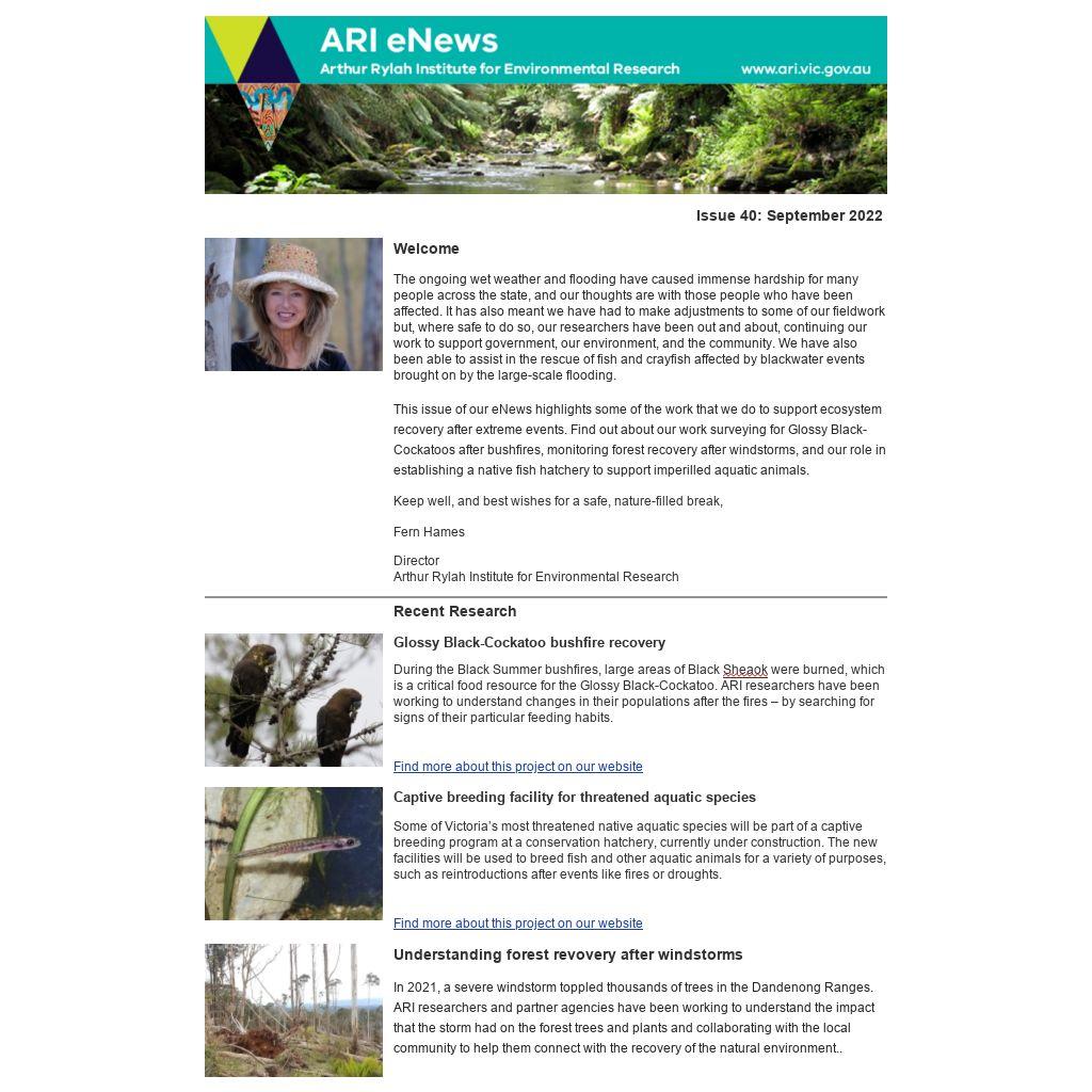 If you know someone who may like to receive the ARI eNews, forward this email on using the 'Share this' option at the top. If this has been forwarded on to you there is an option to sign up below, or use the ‘Subscribe’ button on our website, or email research.ari@delwp.vic.gov.au to be added to the ARI eNews mailing list.