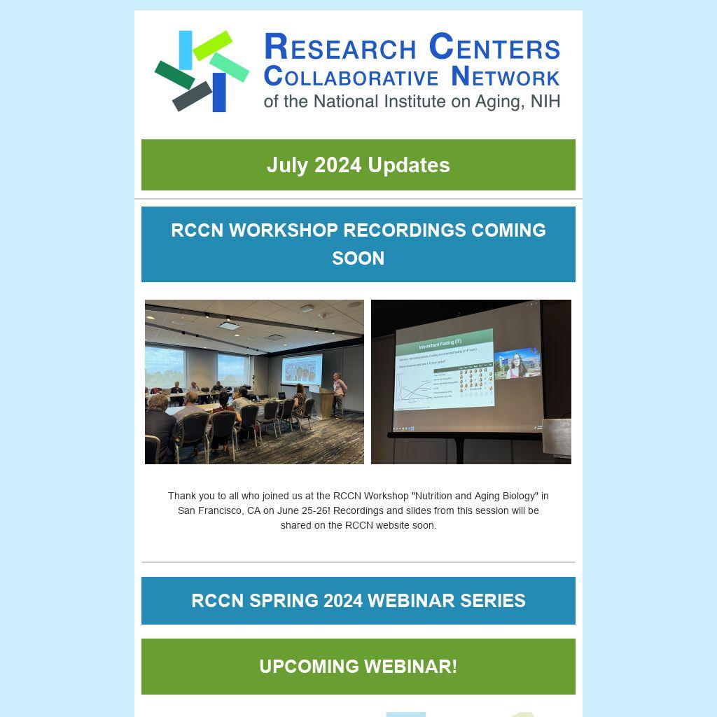 Thank you to all who joined us at the RCCN Workshop "Nutrition and Aging Biology" in San Francisco, CA on June 25-26! Recordings and slides from this session will be shared on the RCCN website soon.
