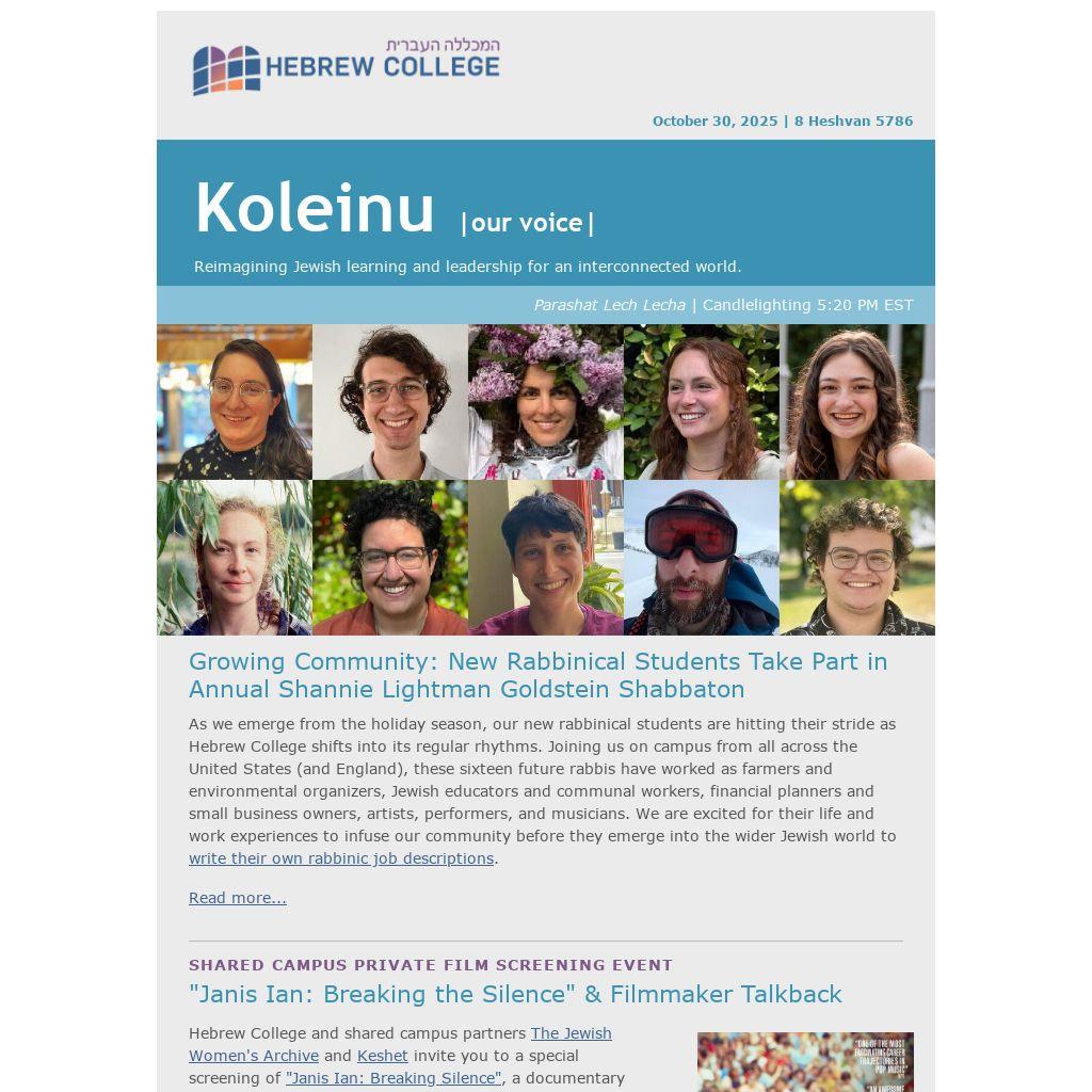 As we emerge from the holiday season, our new rabbinical students are hitting their stride as Hebrew College shifts into its regular rhythms. Joining us on campus from all across the United States (and England), these sixteen future rabbis have worked as farmers and environmental organizers, Jewish educators and communal workers, financial planners and small business owners, artists, performers, and musicians. We are excited for their life and work experiences to infuse our community before they emerge into the wider Jewish world to write their own rabbinic job descriptions.