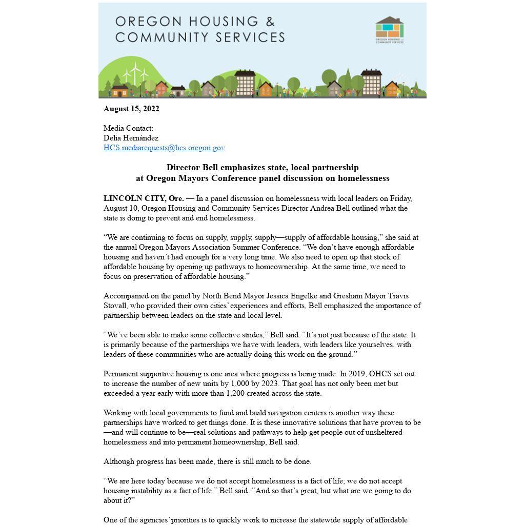 In addition to preparing to ask the Legislature for $800 million in funding for the 2023-25 biennium to sustain homeless services and eviction prevention, among its other programs, OHCS will continue to listen for feedback from local governments.