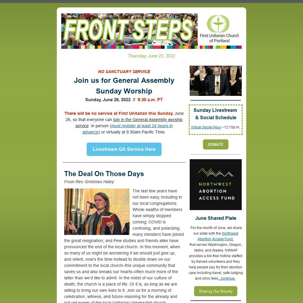 Join us for General Assembly Sunday WorshipSunday, June 26, 2022 Â // Â 9:30 a.m. PT
