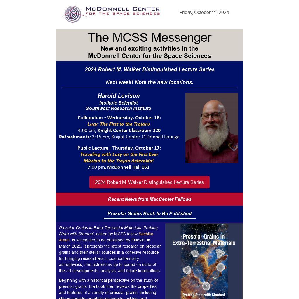 Presolar Grains in Extra-Terrestrial Materials: Probing Stars with Stardust, edited by MCSS fellow Sachiko Amari, is scheduled to be published by Elsevier in March 2025. It presents the latest research on presolar grains and their stellar sources in a cohesive resource for bringing researchers in cosmochemistry, astrophysics, and astronomy up to speed on state-of-the-art developments, analysis, and future implications.