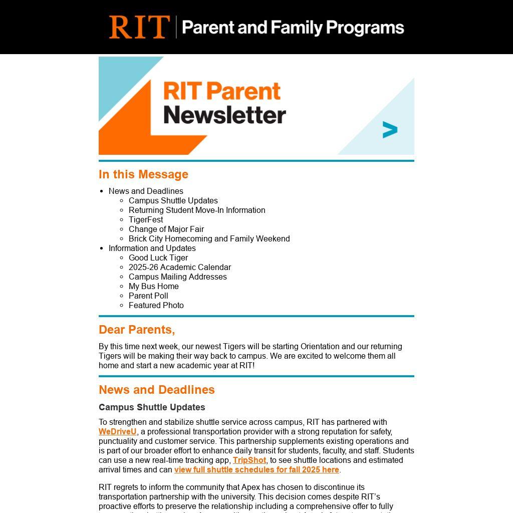 RIT regrets to inform the community that Apex has chosen to discontinue its transportation partnership with the university. This decision comes despite RIT’s proactive efforts to preserve the relationship including a comprehensive offer to fully manage the shuttle service. Anyone with questions about Apex’s future transportation plans is encouraged to contact them directly at 585-565-4600.