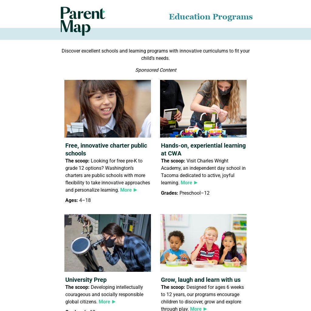 The scoop: Looking for free pre-K to grade 12 options? Washington’s charters are public schools with more flexibility to take innovative approaches and personalize learning. More ►