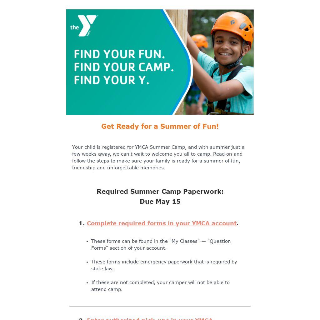 Your child is registered for YMCA Summer Camp, and with summer just a few weeks away, we can't wait to welcome you all to camp. Read on and follow the steps to make sure your family is ready for a summer of fun, friendship and unforgettable memories.