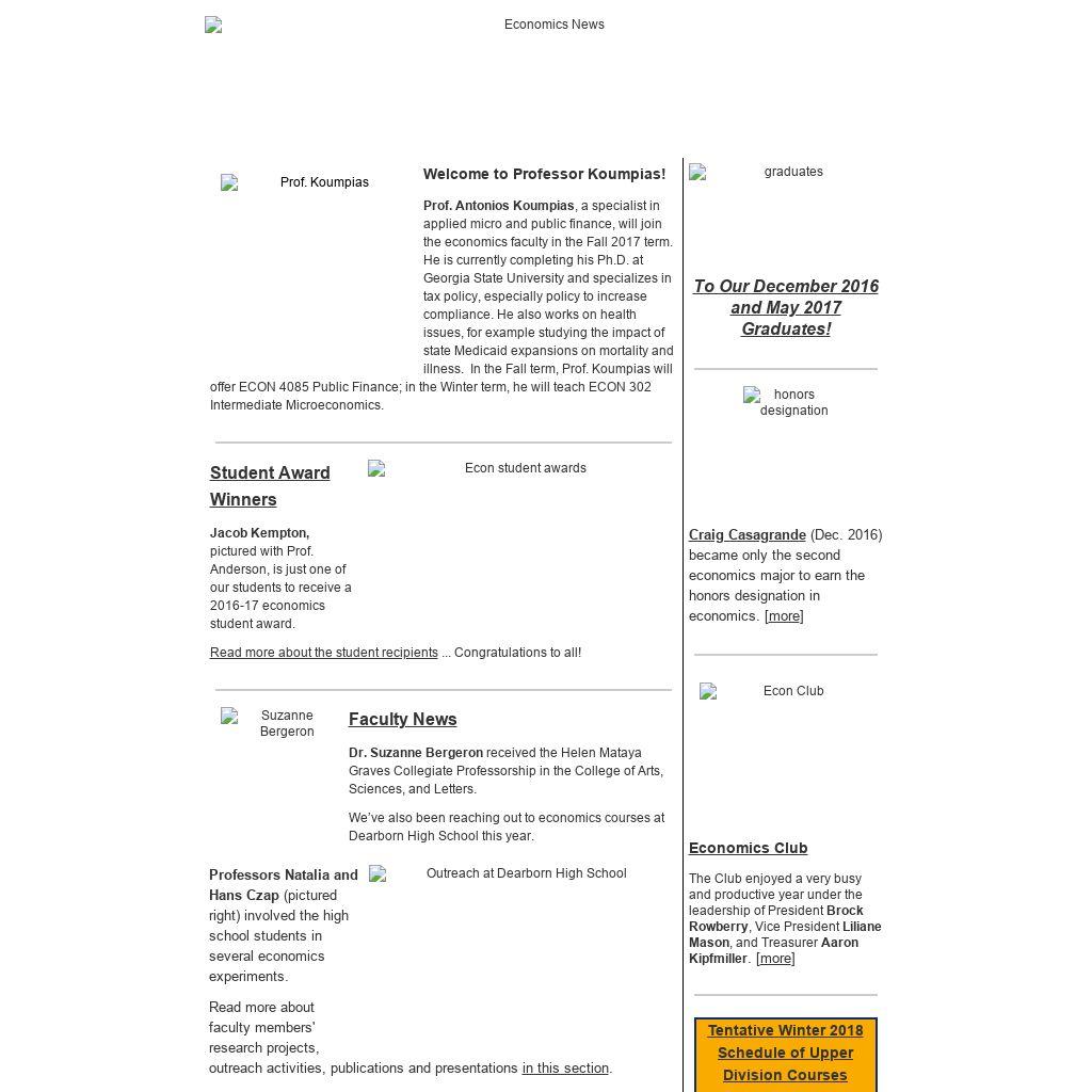 Prof. Antonios Koumpias, a specialist in applied micro and public finance, will join the economics faculty in the Fall 2017 term. He is currently completing his Ph.D. at Georgia State University and specializes in tax policy, especially policy to increase compliance. He also works on health issues, for example studying the impact of state Medicaid expansions on mortality and illness. In the Fall term, Prof. Koumpias will offer ECON 4085 Public Finance; in the Winter term, he will teach ECON 302 Intermediate Microeconomics.