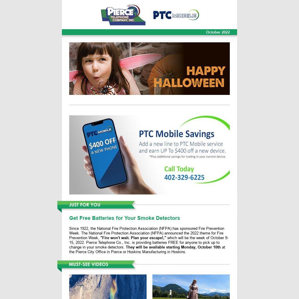 Since 1922, the National Fire Protection Association (NFPA) has sponsored Fire Prevention Week. The National Fire Protection Association (NFPA) announced the 2022 theme for Fire Prevention Week, "Fire won't wait. Plan your escape!," which will be the week of October 9-15, 2022. Pierce Telephone Co., Inc. is providing batteries FREE for anyone to pick up to change in your smoke detectors. They will be available starting Monday, October 10th at the Pierce City Office in Pierce or Hoskins Manufacturing in Hoskins. |