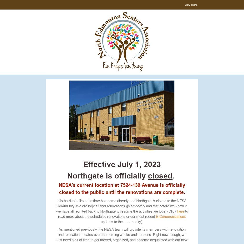 NESA's current location at 7524-139 Avenue is officially closed to the public until the renovations are complete.