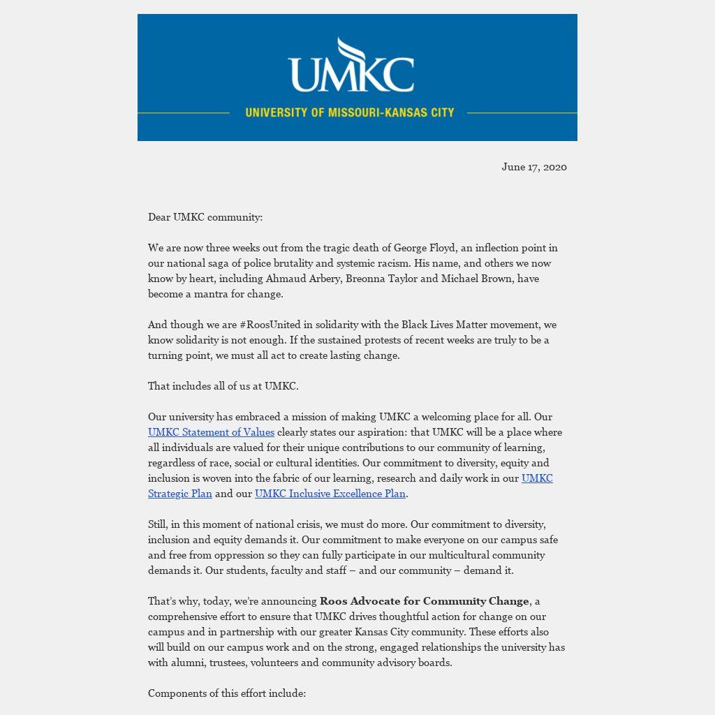 Dear UMKC community: