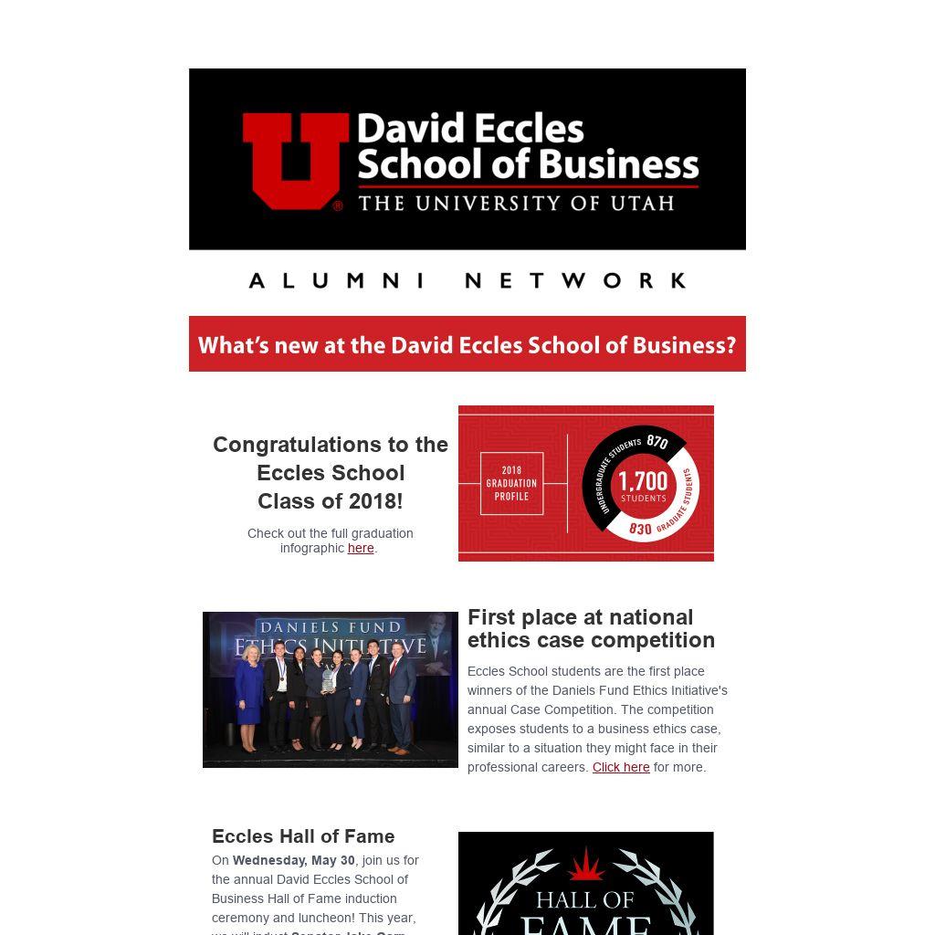 Wednesday, May 30, join us for the annual David Eccles School of Business Hall of Fame induction ceremony and luncheon! This year, we will induct