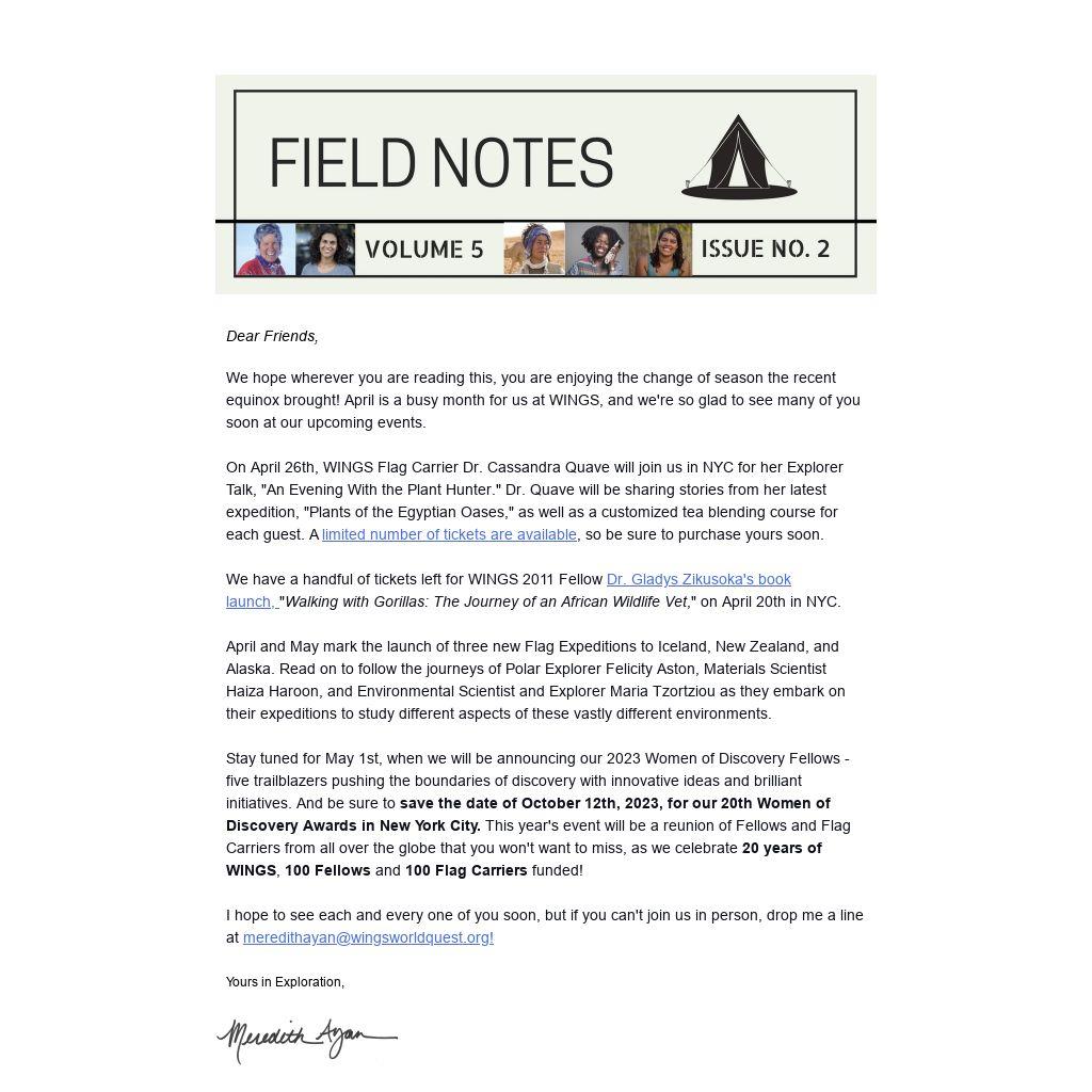 We hope wherever you are reading this, you are enjoying the change of season the recent equinox brought! April is a busy month for us at WINGS, and we're so glad to see many of you soon at our upcoming events.