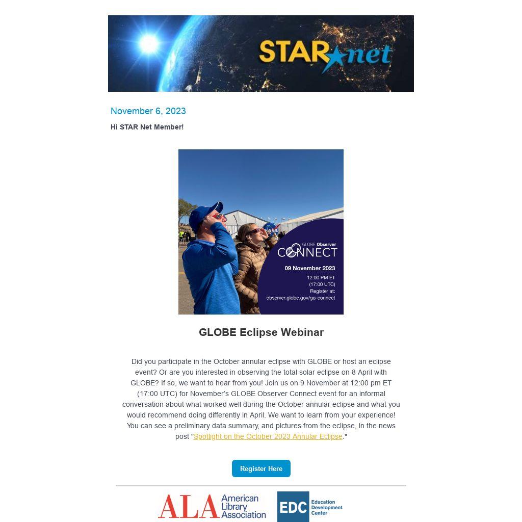 “The STAR Library Network (STAR Net) is a hands-on learning network for libraries and their communities across the country. STAR Net focuses on helping library professionals build their STEM skills by providing “science-technology activities and resources” (STAR) and training to use those resources.