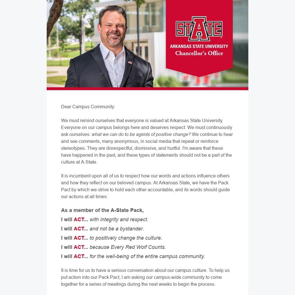 We are planning two more conversations on Tuesday, Nov. 29, that can dive deeper into the concerns of our students and our employees. At 9 a.m., I am inviting our employees to come to their follow-up conversation, and at noon, we will invite students. Both sessions will be in the Reng Student Union Auditorium. There will be drawings for giveaways and refreshments at all three events.