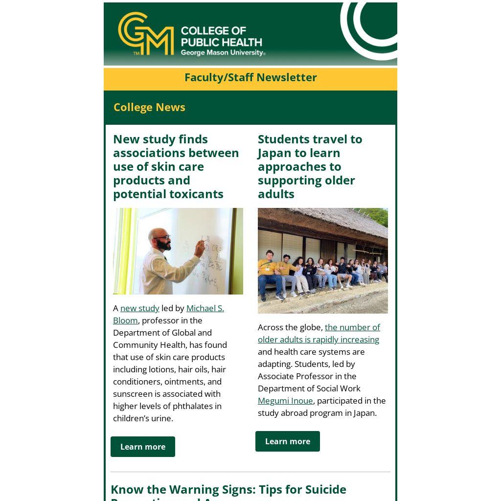 This week, I wanted to highlight the Faculty Success Program and the Early Career Faculty Workbook. If you would like more information, please just let me know: ctompkin@gmu.edu.