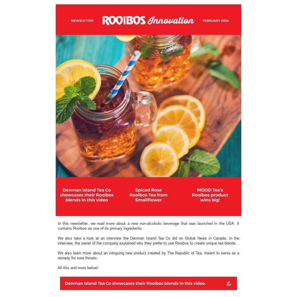 In this newsletter, we read more about a new non-alcoholic beverage that was launched in the USA. It contains Rooibos as one of its primary ingredients.