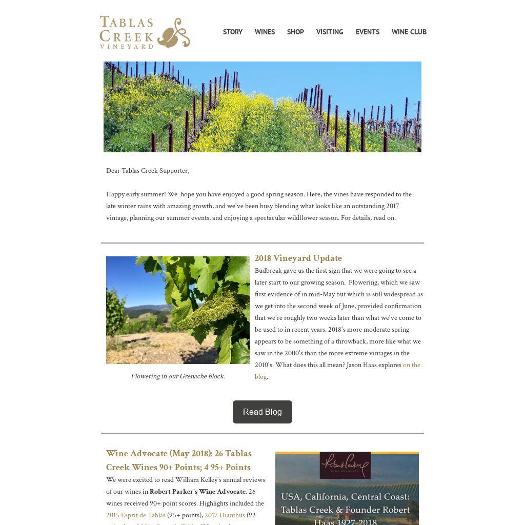 Wine Advocate (May 2018): 26 Tablas Creek Wines 90+ Points; 4 95+ Points