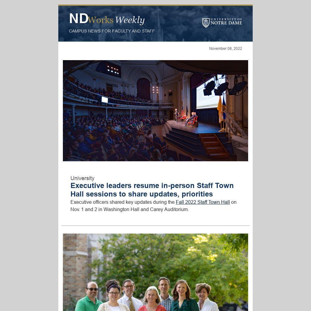 Executive officers shared key updates during the Fall 2022 Staff Town Hall on Nov. 1 and 2 in Washington Hall and Carey Auditorium.