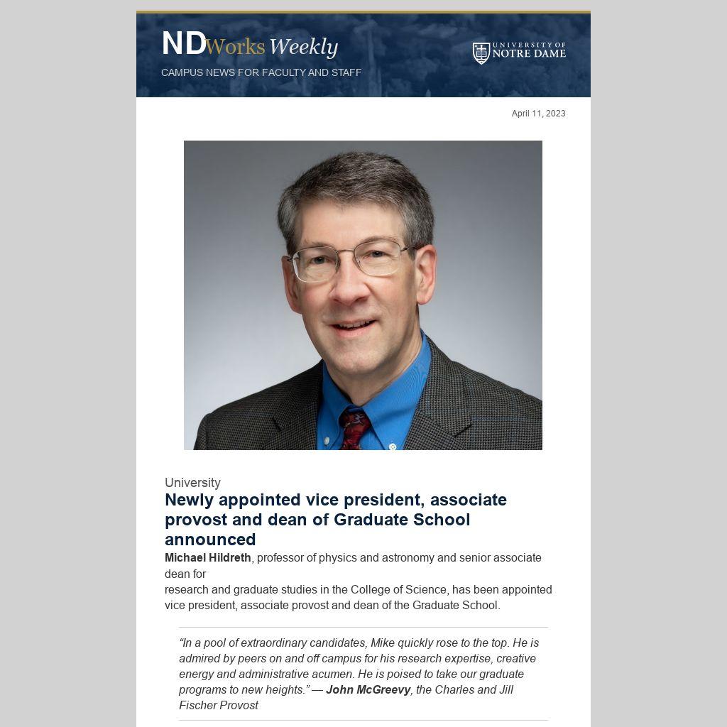“In a pool of extraordinary candidates, Mike quickly rose to the top. He is admired by peers on and off campus for his research expertise, creative energy and administrative acumen. He is poised to take our graduate programs to new heights.” — John McGreevy, the Charles and Jill Fischer Provost