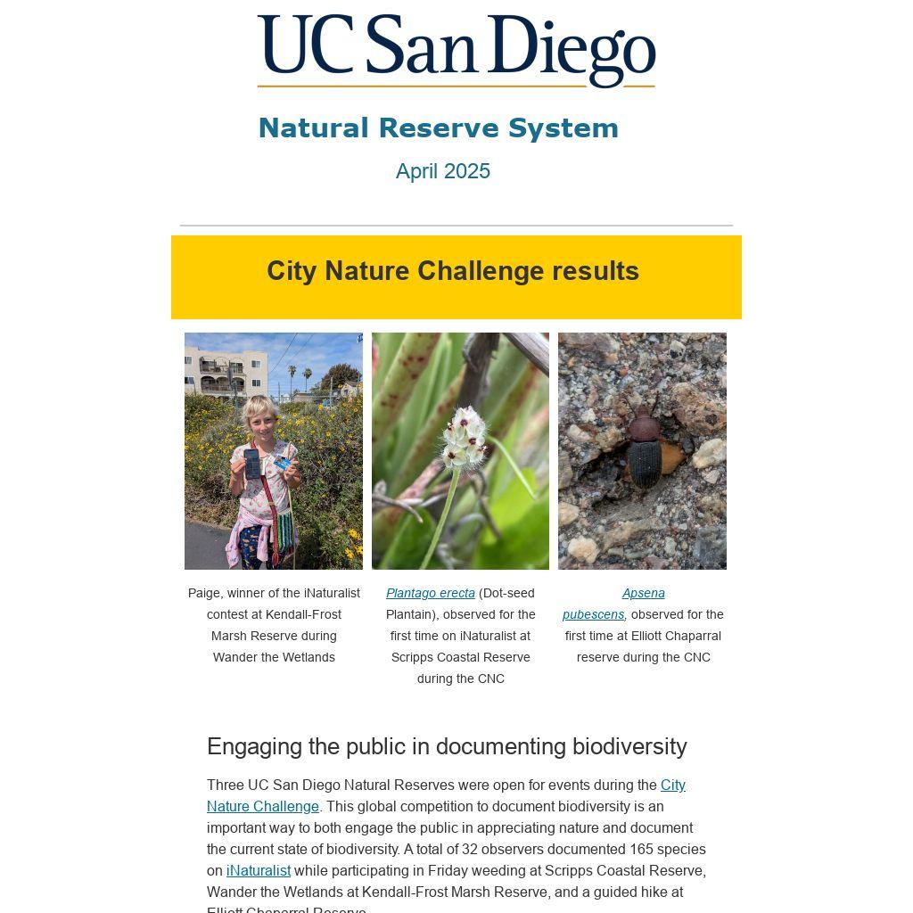 Thank you to the San Diego Natural History Museum and San Diego Bird Alliance for partnering with UC San Diego Natural Reserve System to help document the impressive biodiversity at our reserves.