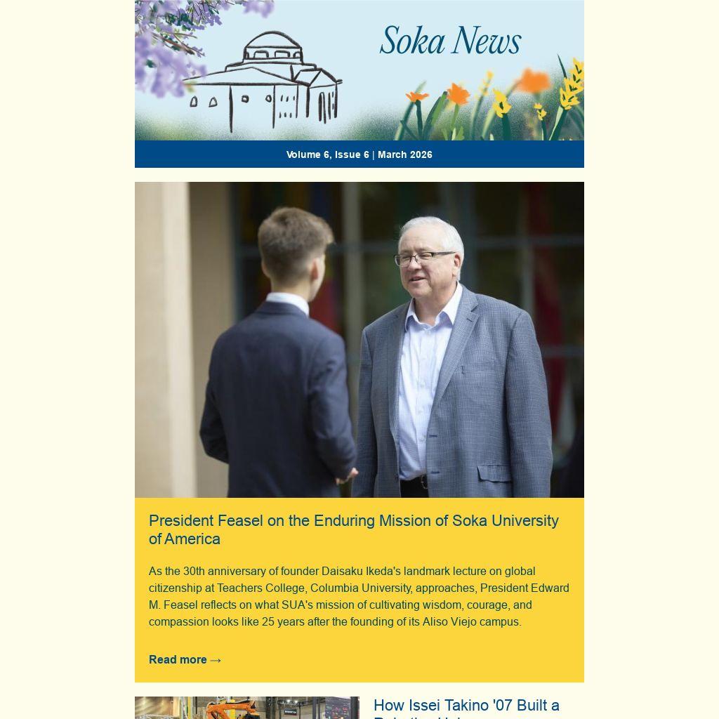As the 30th anniversary of founder Daisaku Ikeda's landmark lecture on global citizenship at Teachers College, Columbia University, approaches, President Edward M. Feasel reflects on what SUA's mission of cultivating wisdom, courage, and compassion looks like 25 years after the founding of its Aliso Viejo campus.