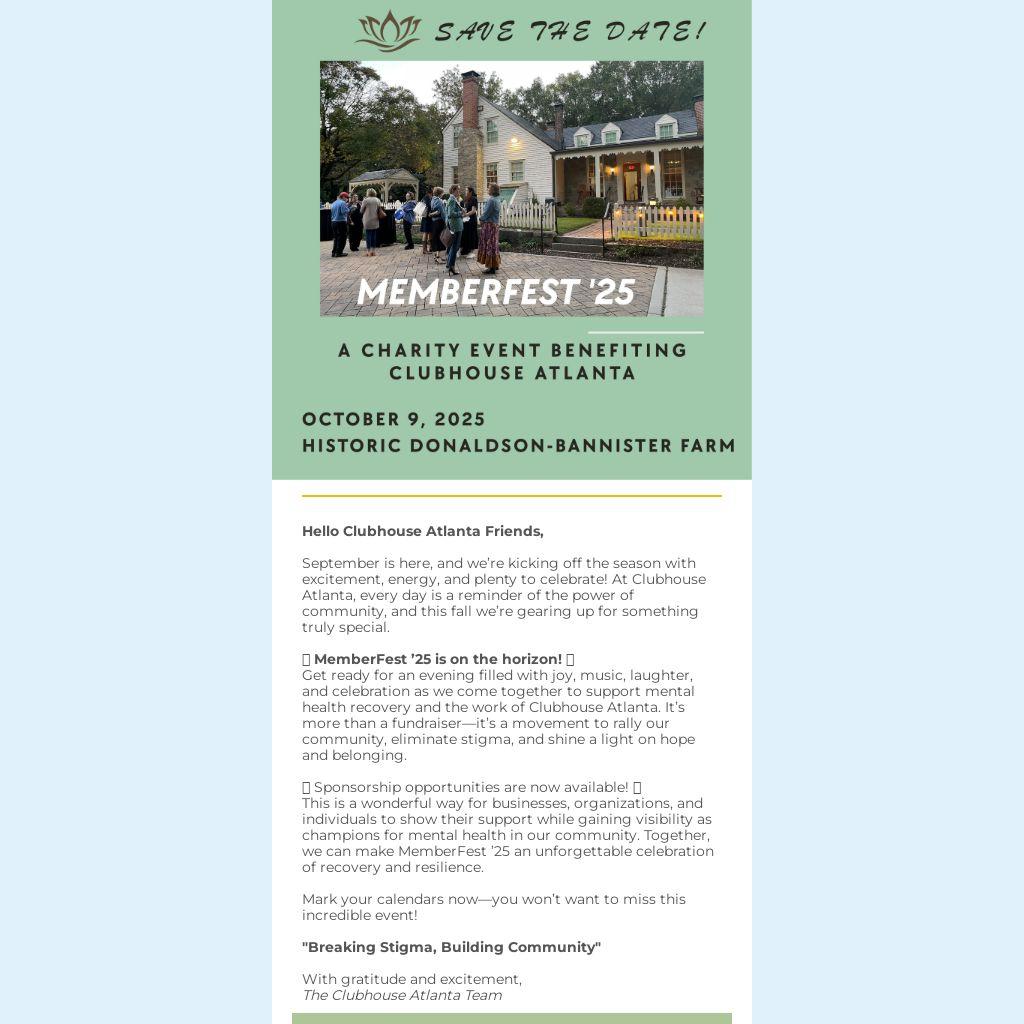 Get ready for an evening filled with joy, music, laughter, and celebration as we come together to support mental health recovery and the work of Clubhouse Atlanta. It’s more than a fundraiser—it’s a movement to rally our community, eliminate stigma, and shine a light on hope and belonging.