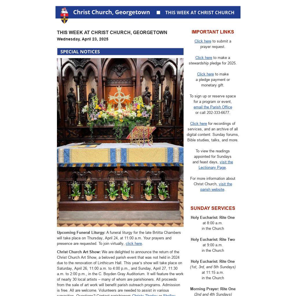THIS WEEK AT CHRIST CHURCH, GEORGETOWN Wednesday, April 23, 2025