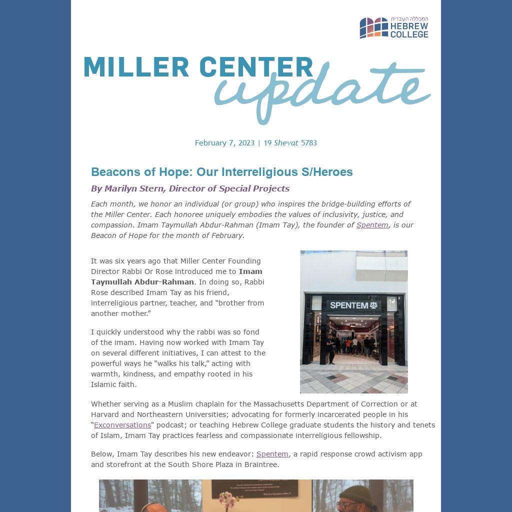 Each month, we honor an individual (or group) who inspires the bridge-building efforts of the Miller Center. Each honoree uniquely embodies the values of inclusivity, justice, and compassion. Imam Taymullah Abdur-Rahman (Imam Tay), the founder of Spentem, is our Beacon of Hope for the month of February.