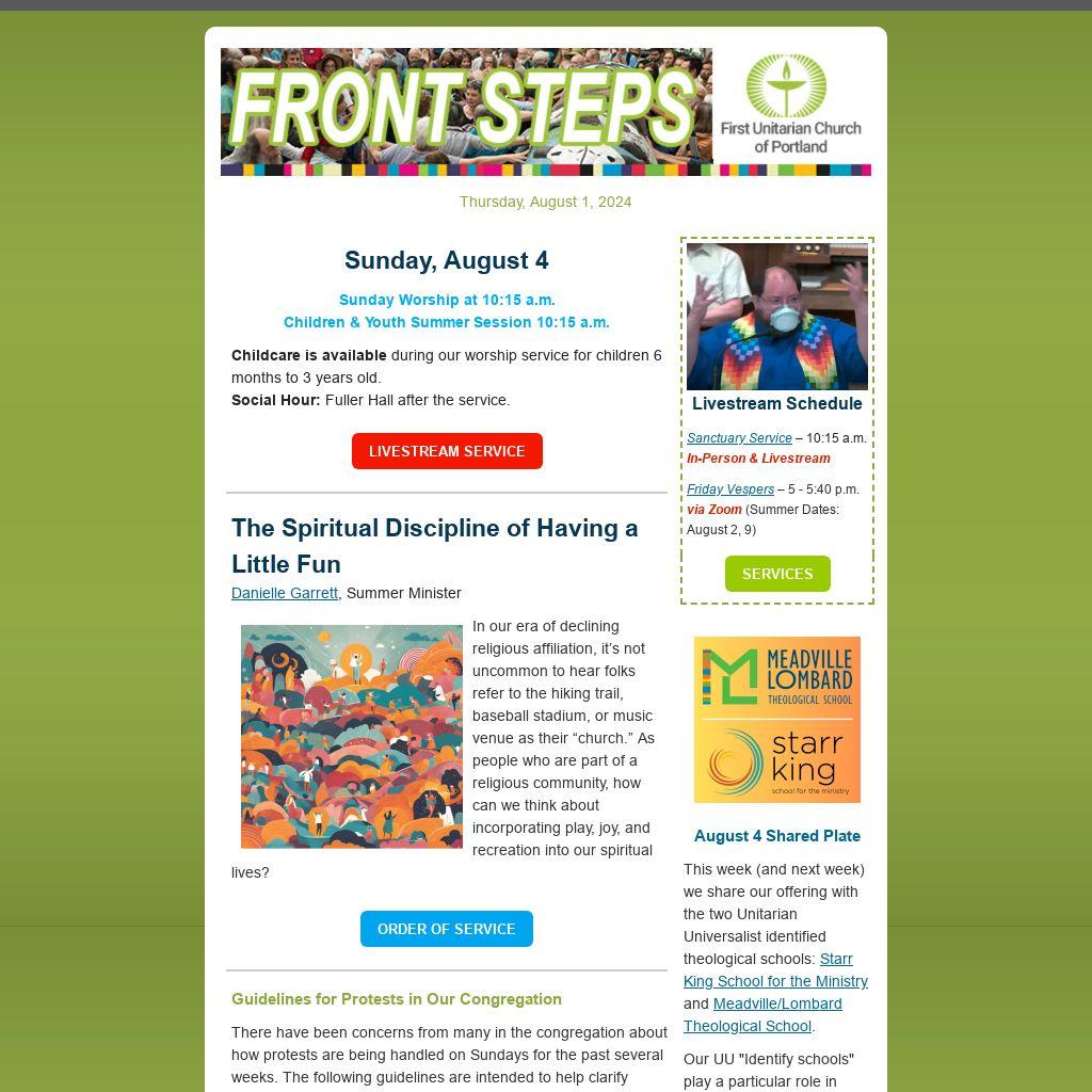 Got something for Front Steps? Send in your church-related submission for our weekly publication. Use "Front Steps" as the subject line and submit here.