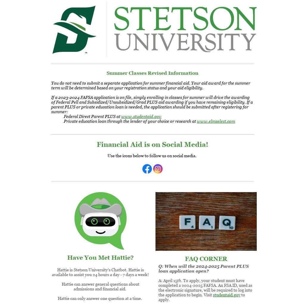 If a 2023-2024 FAFSA application is on file, simply enrolling in classes for summer will drive the awarding of Federal Pell and Subsidized/Unsubsidized/Grad PLUS aid awarding if you have remaining eligibility. If a parent PLUS or private education loan is needed, the application should be submitted after registering for summer: