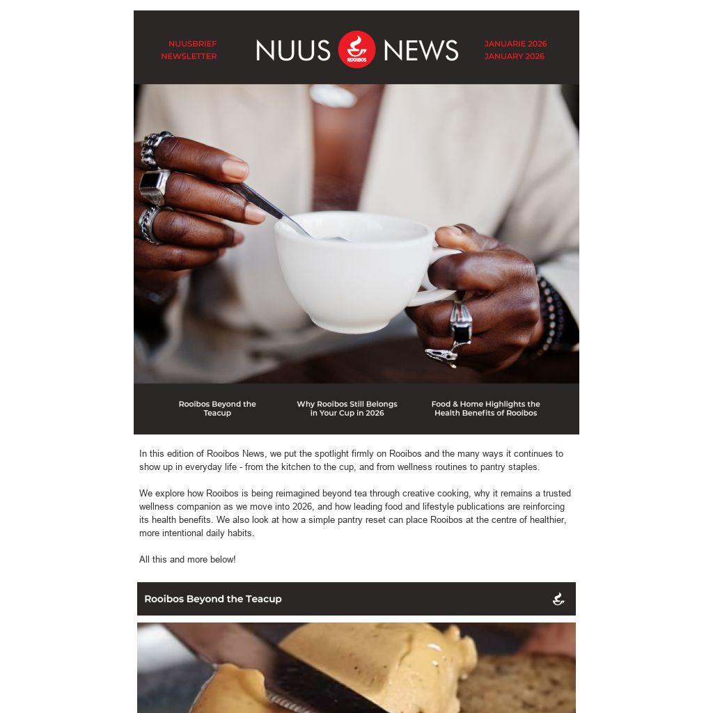 In this edition of Rooibos News, we put the spotlight firmly on Rooibos and the many ways it continues to show up in everyday life - from the kitchen to the cup, and from wellness routines to pantry staples.