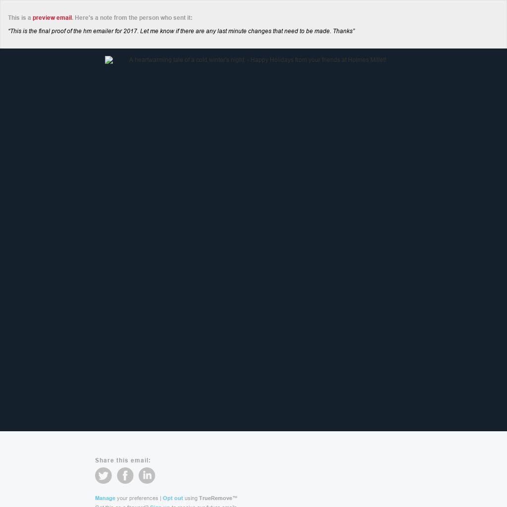 “This is the final proof of the hm emailer for 2017. Let me know if there are any last minute changes that need to be made. Thanks”