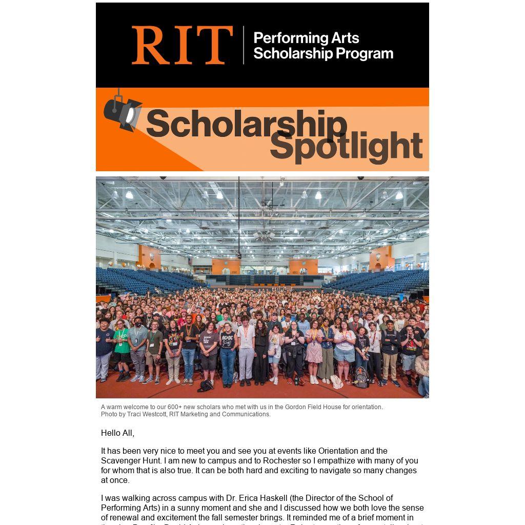 A warm welcome to our 600+ new scholars who met with us in the Gordon Field House for orientation.