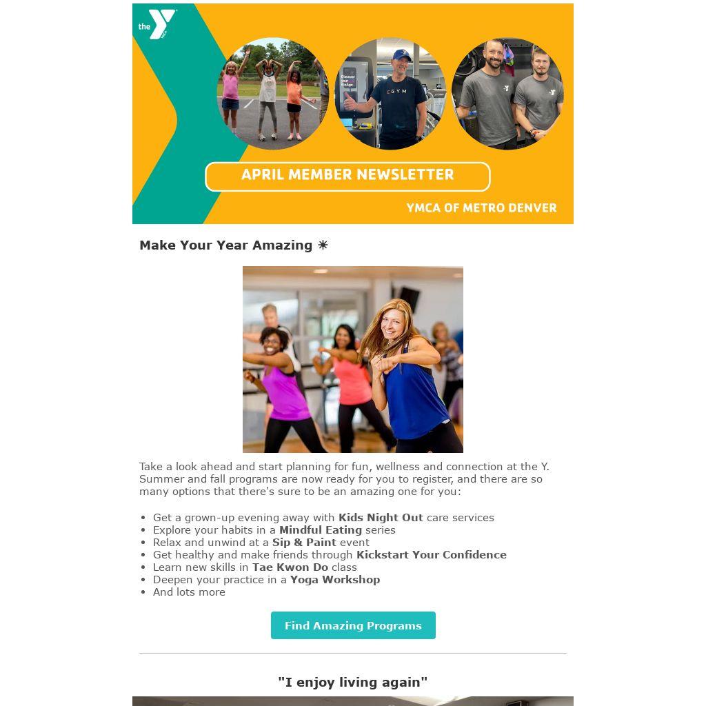 Take a look ahead and start planning for fun, wellness and connection at the Y. Summer and fall programs are now ready for you to register, and there are so many options that there's sure to be an amazing one for you: