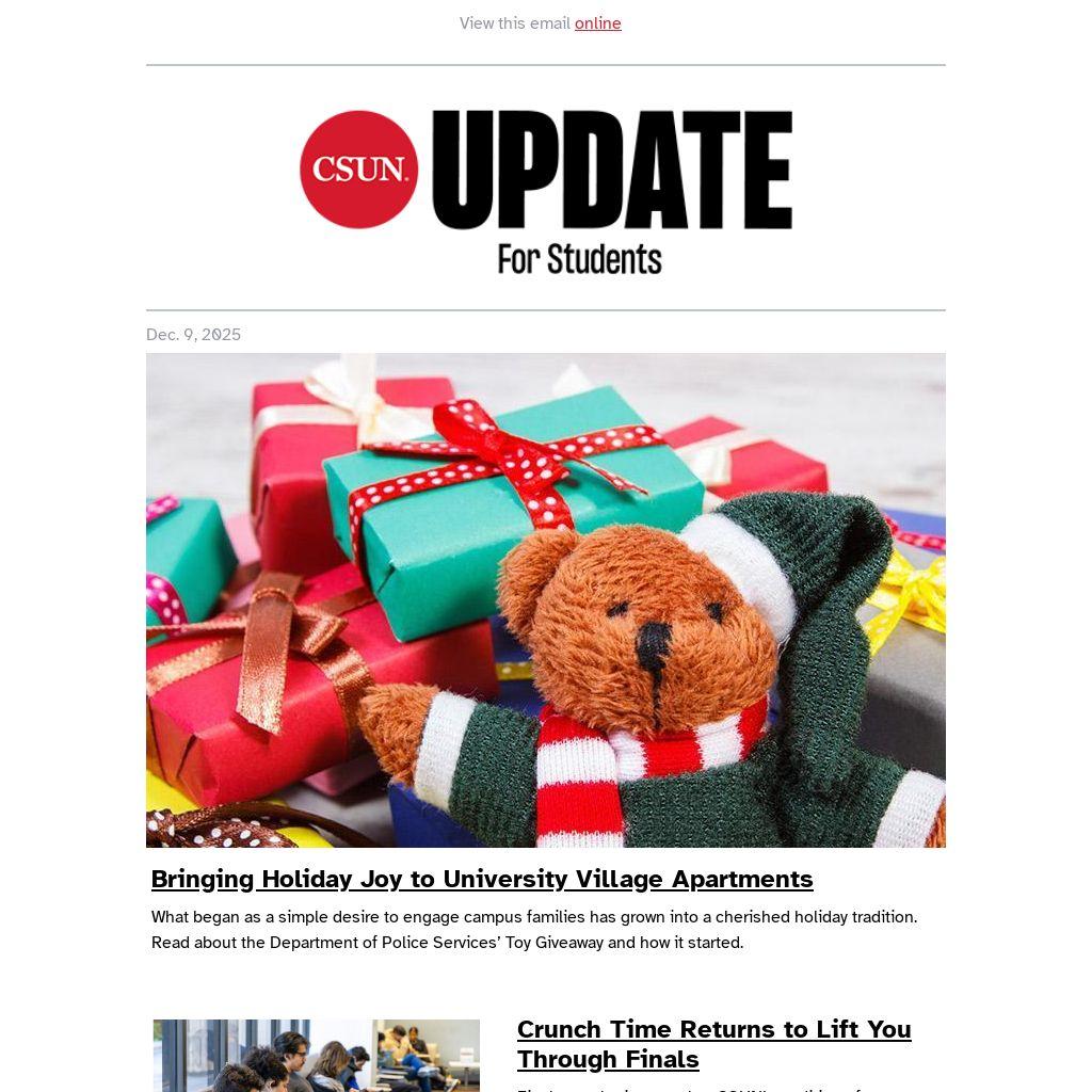 | Finals may be intense, but CSUN’s tradition of support is here! Explore two weeks of relaxing activities, free supplies, good food and a little fun.